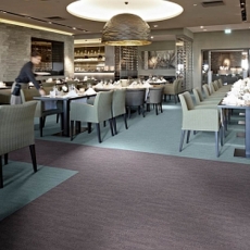 Може укладатися рулонами або плиткою. Рулонні варіанти доречні для великих відкритих площ, тоді як плиткові - для модульних офісів і приміщень зі складною геометрією. Важливою перевагою є можливість локального ремонту: пошкоджений сегмент легко замінюється без демонтажу всієї підлоги. Догляд не потребує складних процедур. Регулярне пилососіння та періодичне глибоке очищення зберігають структуру ворсу й продовжують термін служби. Завдяки сучасним технологіям просочення матеріалів покриття краще протистоїть забрудненням.